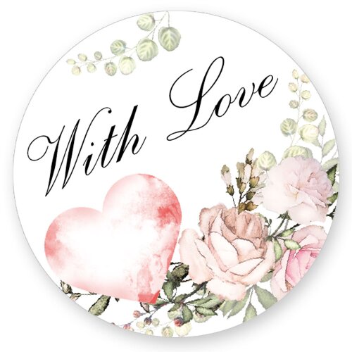50 adesivi WITH LOVE - Motivo Fiori Rotondo Ø 4,5 cm